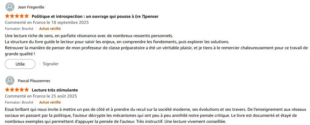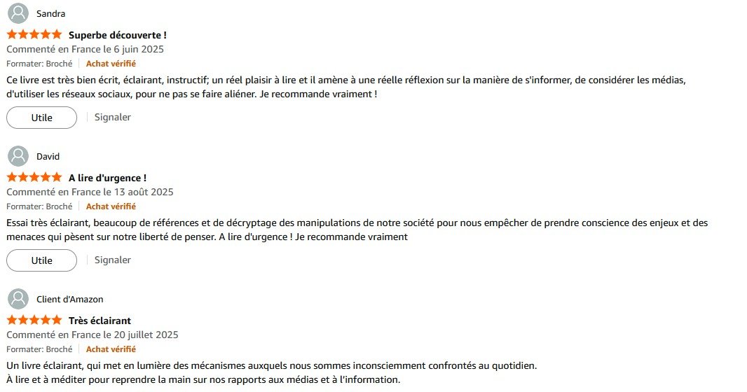 Retrouvez ici les avis, retours, impressions et recommandations de mes lecteurs. Merci à tous pour ces commentaires, et n’hésitez pas à proposer le votre sur le site Amazon !