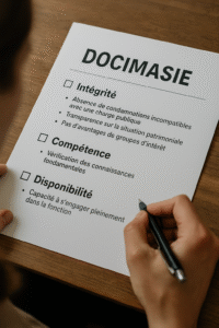 Les critères pertinents pour une docimasie contemporaine pourraient alors relever d’une triple exigence. Un premier volet toucherait à l’intégrité personnelle, c’est-à-dire l’absence de condamnations incompatibles avec une charge publique, (le symbole du candidatus) la transparence patrimoniale la plus élémentaire et l’engagement à ne recevoir aucun avantage de groupes d’intérêt durant l’exercice de la fonction. Un second volet se rapporterait à la compétence minimale requise, non pas sous la forme d’un diplôme ou d’un capital culturel excluant, mais sous celle d’une vérification que le citoyen maîtrise les bases du domaine qu’il supervisera. Cette compétence pourrait être acquise par une formation préalable obligatoire, ce qui éviterait que la docimasie ne devienne un filtre social. La rotation rapide des charges politiques demanderait enfin que le citoyen désigné puisse se rendre pleinement disponible, puisqu’une fonction publique exercée pour un temps bref mais dense impose une présence continue et ne saurait être assumée sans garantir à celui qui s’y consacre qu’il ne verra ni sa situation matérielle fragilisée ni son équilibre de vie compromis.